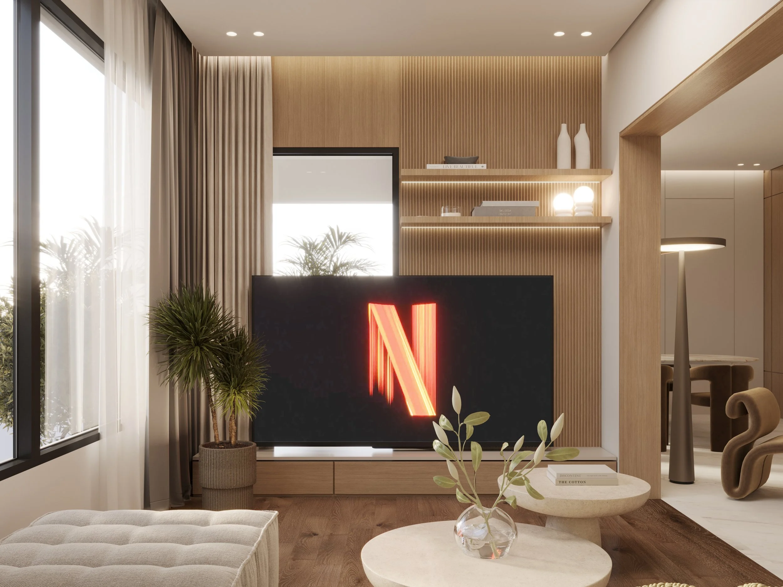 Natural materials run throughout. Wood and stone bring warmth and weight, grounding the interior in something tactile and enduring. Custom joinery gives each room its quiet backbone, built-in elements that feel native to the space and serve the couple without announcing themselves. Soft furnishings layer in comfort and intimacy, completing rooms that invite you to slow down and stay.